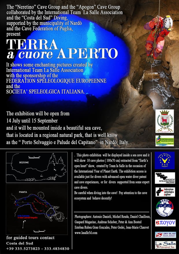 Avec le soutien de la Société de Spéléologie de Cuba, de la Fédération Italienne de Spéléologie et de la Fédération Française de Spéléologie, l’Association La Salle Team Internationale organise, du 28 février au 24 mars 2013, une expédition spéléologique à Matanzas – Cuba pour l’exploration des grottes situées dans le « Parc de Tope de Collantes », à celles de Martin Inferno » et dans les cavités de la Vallée de Viñales. Le programme s’articule autour de deux grands thèmes, tout d’abord, la documentation photographique et vidéo en relief et ensuite, l’exploration, l’étude et la topographie de la grotte Garibaldi.